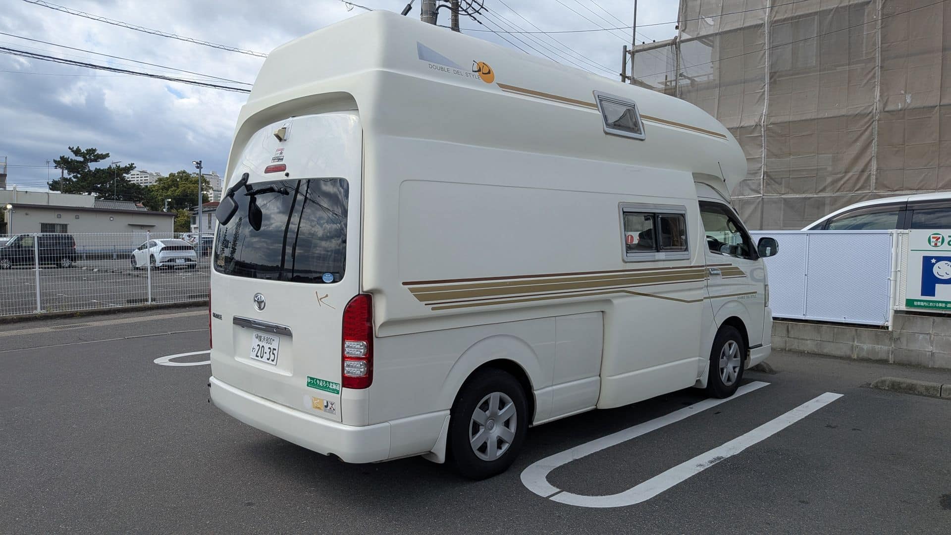 発電機搭載で外部電源不要で家庭用エアコンも使えて快適でした。インバーターも搭載されていて重宝しましたが発電機利用時のみと少しだけ制限あり。全長は5m以内で扱いやすいですが、高さと幅があるため駐車場探しには注意が必要です。