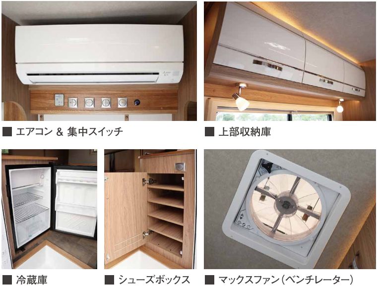 ・家庭用エアコンはエンジンを止めた状態で長時間使用でき、夏場も快適な車内空間を満喫できます。