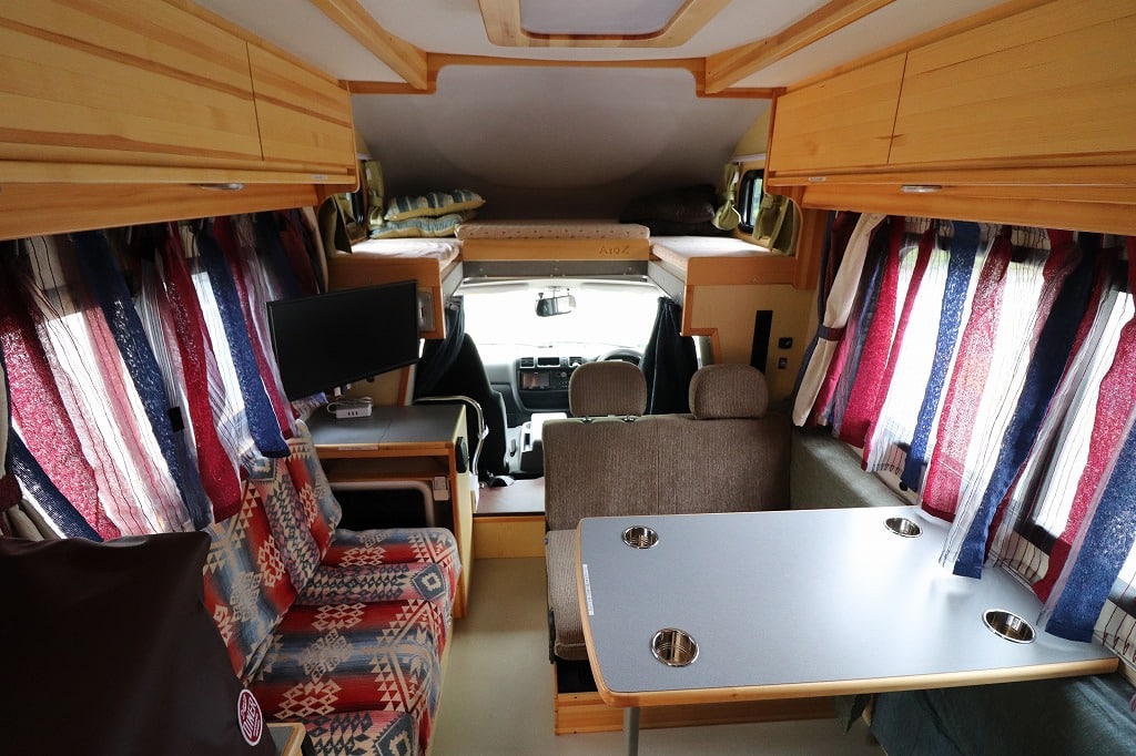 キャンピングカーの中では小型の部類なので、就寝人数やエンジンパワーにあまり余裕が無いものの、四人家族程度で、きつい山岳コースでなければとても快適にお過ごし頂けると思います。