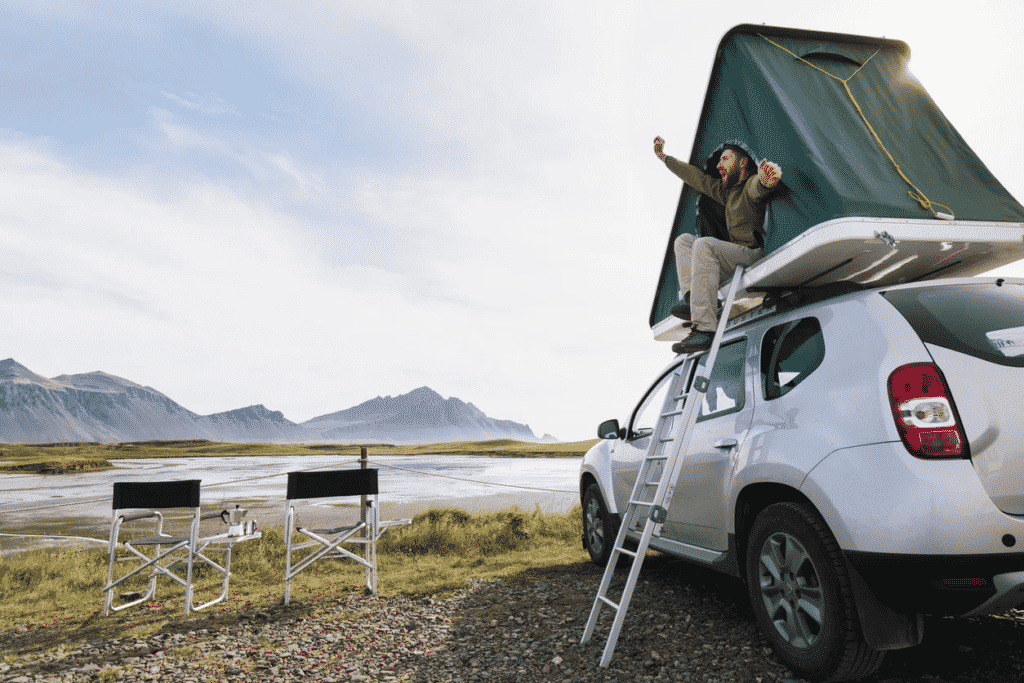 車の上にテントを張ったような感じで普通の車でキャンプが楽しめるアイテムです。
