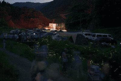 キャンプ場内に小川が流れていて6月にはホタルを見ることができます。管理人さんいわく毎年6月10日~20日がピークでホタルの光の乱舞を見ることができるそうです。