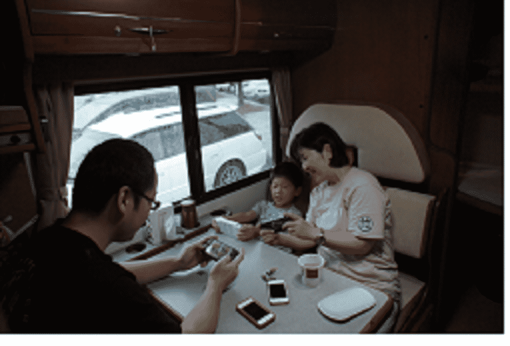 - 子供は窮屈な車だとロングドライブは厳しいものがあるが、キャンピングカーだと自宅で遊んでる感覚で車内を動き回ったりできるので、飽きずに楽しくロングドライブができた。