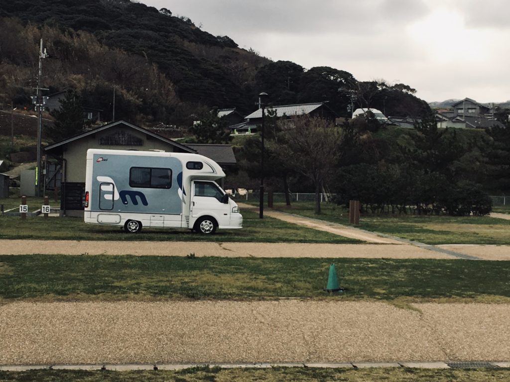 キャンピングカーが横風でグラグラ揺れたり、雨が天井に当たってバタバタ大きな音がなるしで、子どもたちもうにゃうにゃ言いながら起きてきて泣いてました。