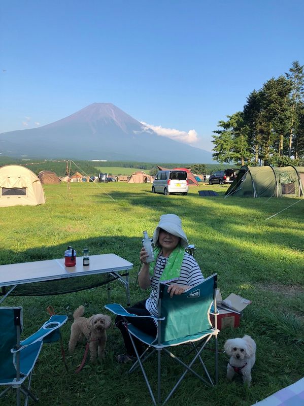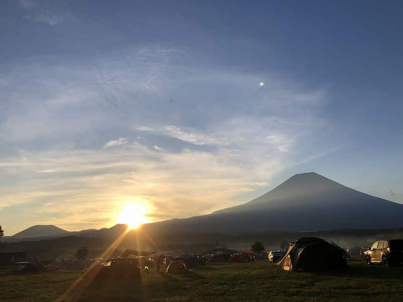 3日目 富士山麓のキャンプ場「ふもとっぱら」夕日も朝日も美しかった。富士山を目の前に飲んだビールは最高でした。
