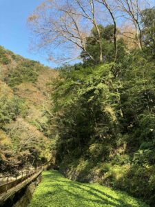 高速降りて峠道では登りが少し辛く、後続車を先に譲りながらゆっくりと紅葉を楽しみました。