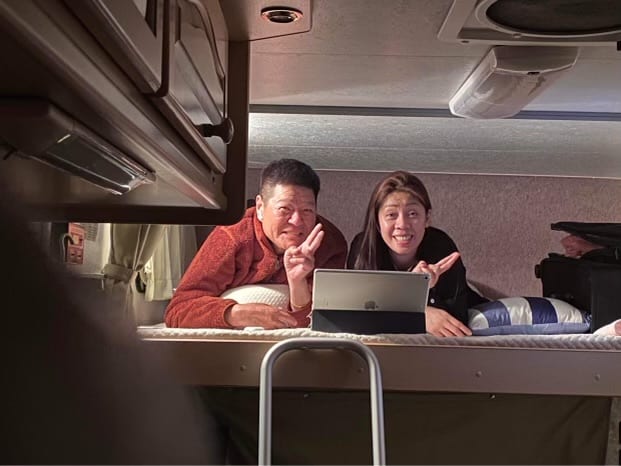 暖かい室内で波の音を聞きながら食事、ワインを飲みながら音楽を聴き、リラックスできました。家族4人でしたので、車両の最後部が2段ベッドで、運転席上に2人が余裕で寝る事ができ、なかなかです。