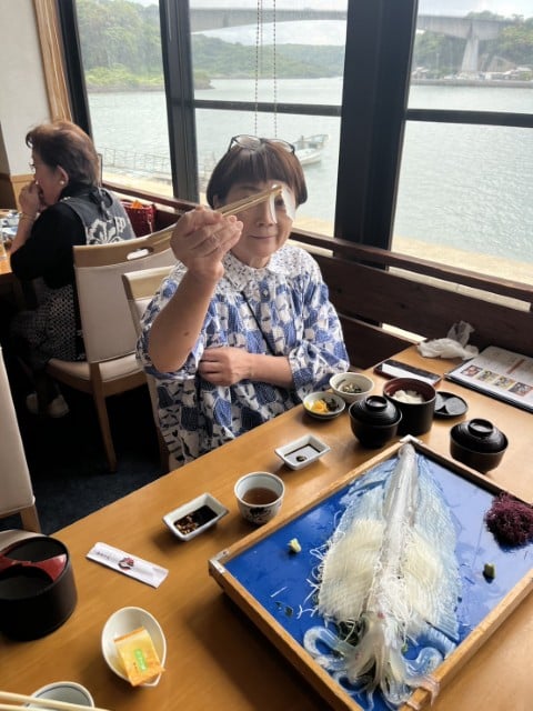 名物の「イカの活き造り」は、やっぱり格別でした。透明な身がコリコリしていて、噛むほどに甘みが出てくる。残った部分は天ぷらにしてもらって、二度おいしい体験!