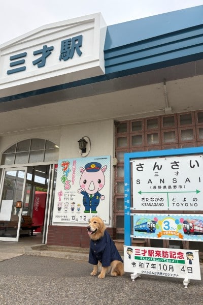 三才になる愛犬ゴールデンレトリバーを連れて行きたかった長野県にある三才駅を目指した旅行にファンルーチェパタゴニアと共に行ってきました